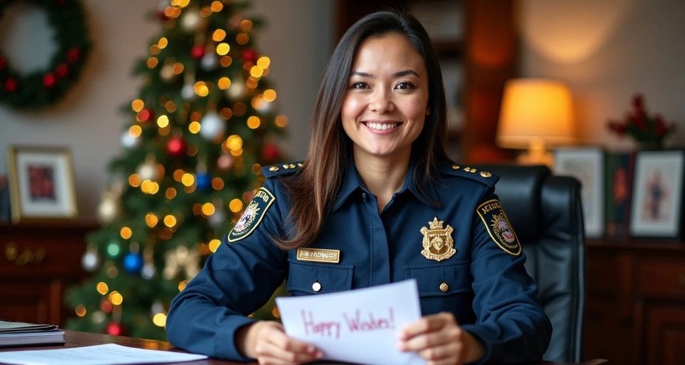 Nadinsp. Magdalena Nguyen-Fudala wraz z kierownictwem Komendy Wojewódzkiej Policji w Opolu składa życzenia zdrowych i spokojnych Świąt Bożego Narodzenia oraz bezpiecznego Nowego Roku 2026.