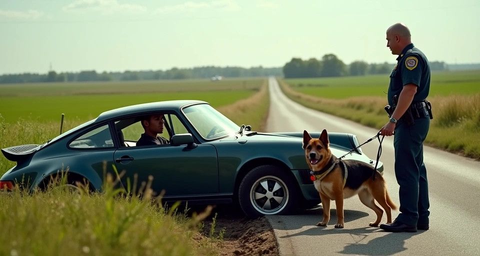 Wczesnym rankiem funkcjonariusz z Komendy Powiatowej Policji w Olesnie, jadąc z psem służbowym wyszkolonym do tropienia zapachu ludzkiego, jechał na zgłoszenie o włamaniu. W rejonie Kadłuba Turawskiego zauważył pojazd leżący w rowie. Z otwartego samochodu wystawała noga kierowcy a koło nadal się kręciło.